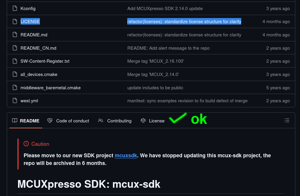 No, correction, on a legal stance you and I are NOT allowed to download/use/modify their code (github’s TOC is clear about that). None of it (read-only/copyright). Both the Milk-V & Sophgo’s repos - all lacking the minimal licensing requirement to legally allow for that. And so if you’ve downloaded their code locally, used, or modified it you are legally liable/at a serious risk.